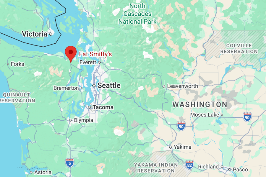 Fat Smitty’s is located just off Highway 101 in Discovery Bay, just outside of Port Townsend on Washington’s Olympic Peninsula.