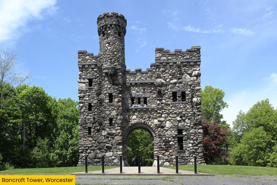 Then there’s Bancroft Tower in Worcester, which looks like a mini medieval fortress dropped right in the middle of Salisbury Park.