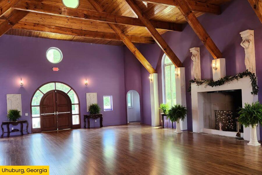 Step inside and you’ll find philosophical murals, a Great Hall, guest chambers, a tropical atrium, and a spiral staircase that give the castle a timeless feel.