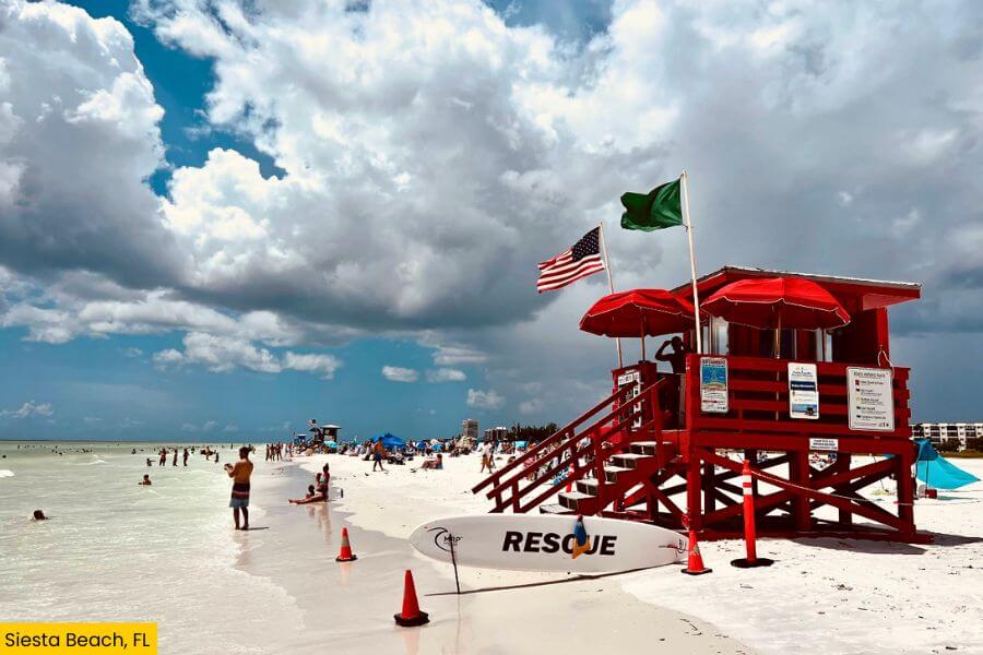Lifeguards are on duty at Siesta Beach, and there’s free public parking, though it tends to fill up quickly during peak times.