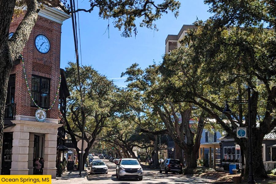 Crossing into Mississippi, Ocean Springs is your artsy, small-town stop with a beachy twist and way more charm than you’d expect.