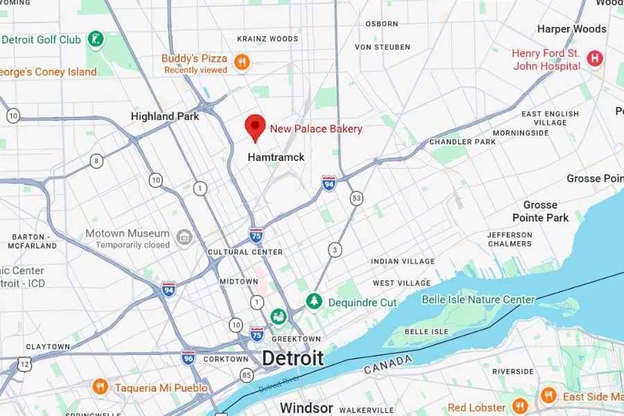 New Palace Bakery is located in Hamtramck, a small city completely surrounded by Detroit in southeast Michigan.