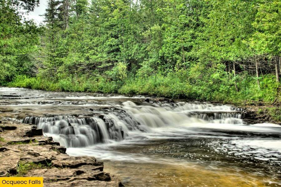 Ocqueoc Falls sits on the Ocqueoc River in Presque Isle County, and it’s famous for being the largest natural waterfall in Michigan’s Lower Peninsula.