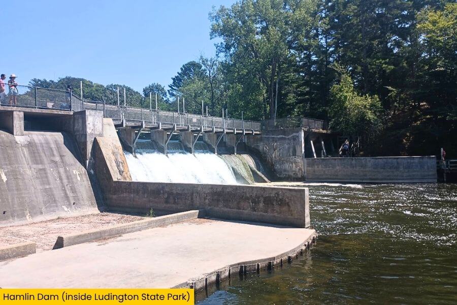 Then Hamlin Dam in Ludington State Park turns things up with a rush of water along the Big Sable River where it flows out of Hamlin Lake.