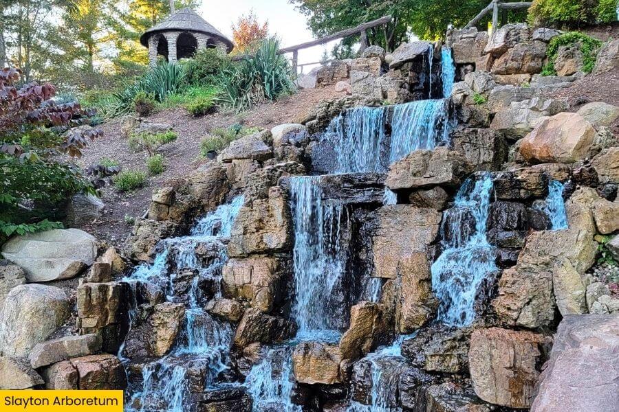 Slayton Arboretum in Hillsdale offers a quieter stop with small, decorative cascades tucked into a 48-acre campus setting at Hillsdale College.