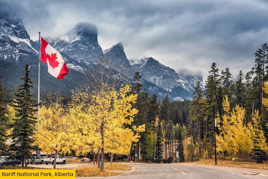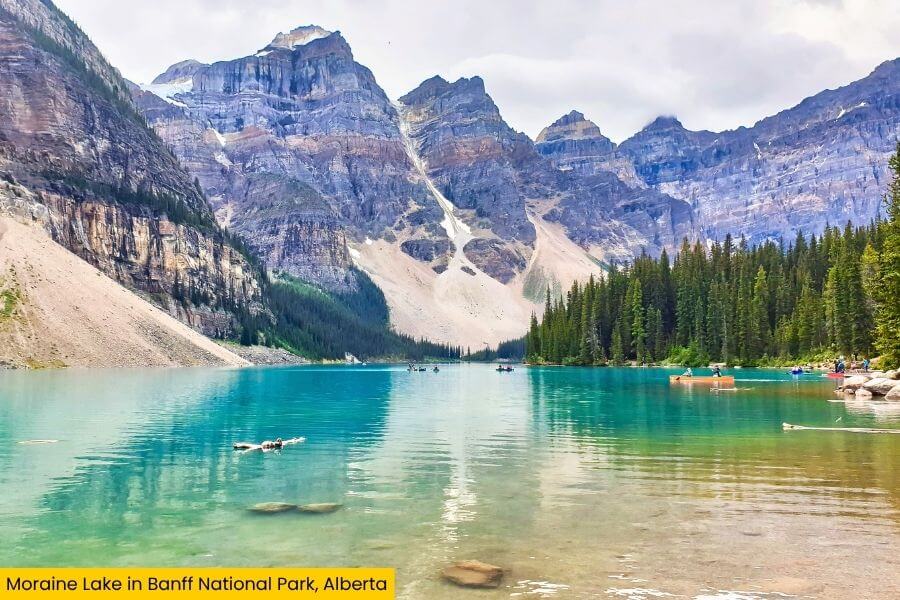 Crossing into Canada, Banff National Park in the Canadian Rockies is filled with towering peaks, turquoise lakes, and glaciers that date back over 10,000 years.