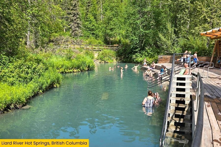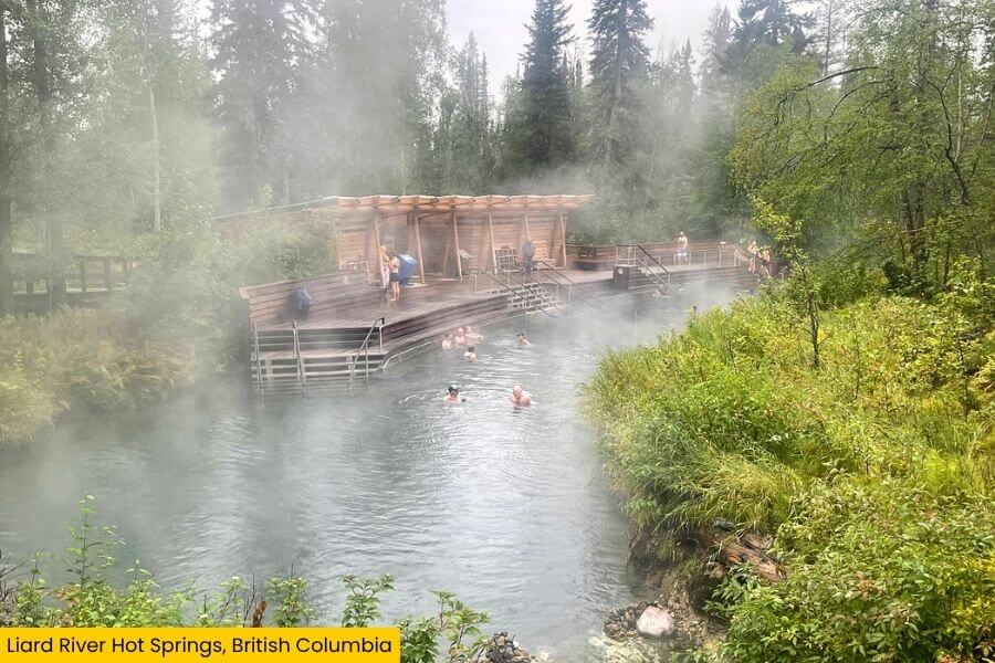 After many hours on the road, slipping into these naturally heated waters under rising steam and towering spruce trees is one of the most relaxing breaks on the entire drive north.