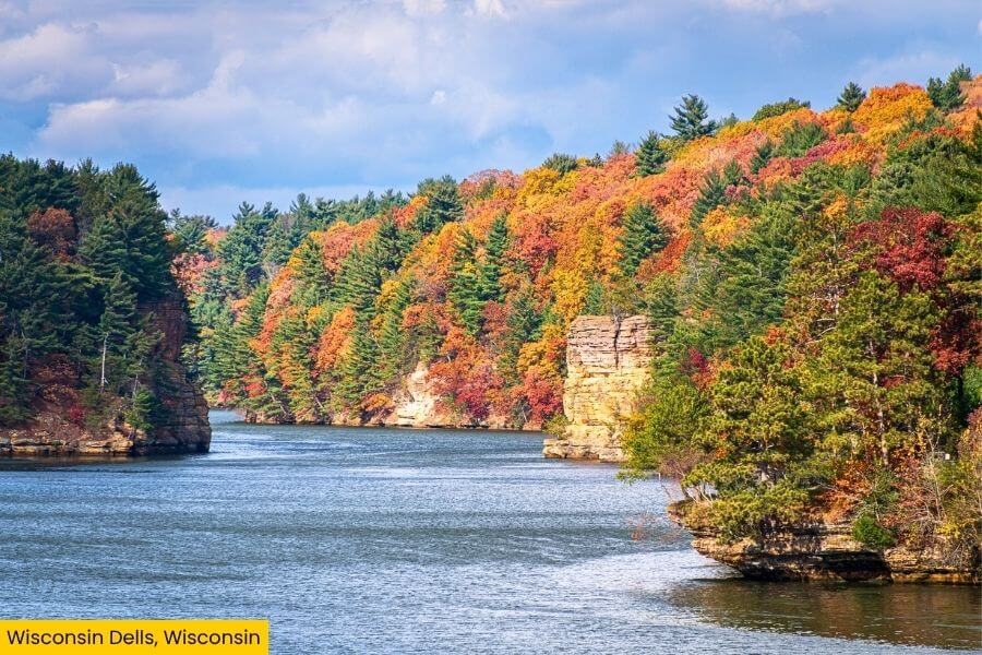 You can float past towering sandstone cliffs on a classic Upper Dells boat tour, where rock formations like Witches Gulch and Stand Rock have been carved out over millions of years.