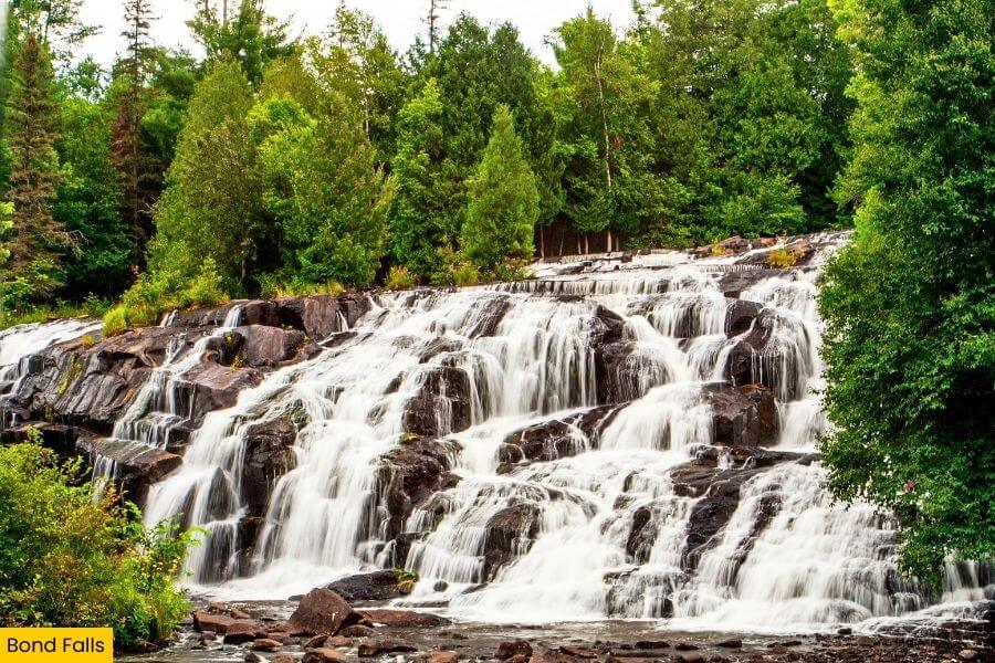 From Laughing Whitefish Falls, it’s just over a 2-hour drive to Bond Falls, located along the Middle Branch of the Ontonagon River, about a 6-minute drive from the small town of Paulding.