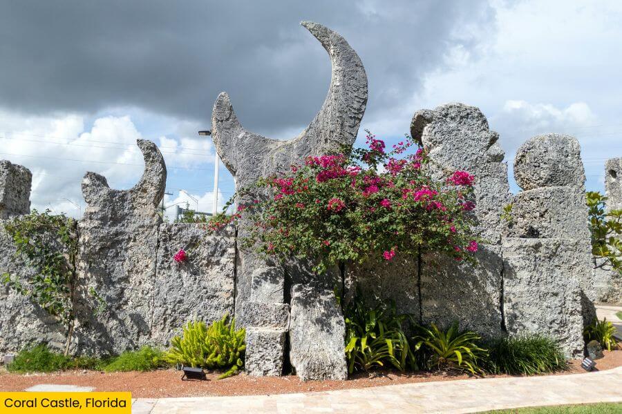 Coral Castle is located in Homestead, roughly a 40-minute drive from Miami, an hour from Fort Lauderdale, and about four hours from Orlando.
