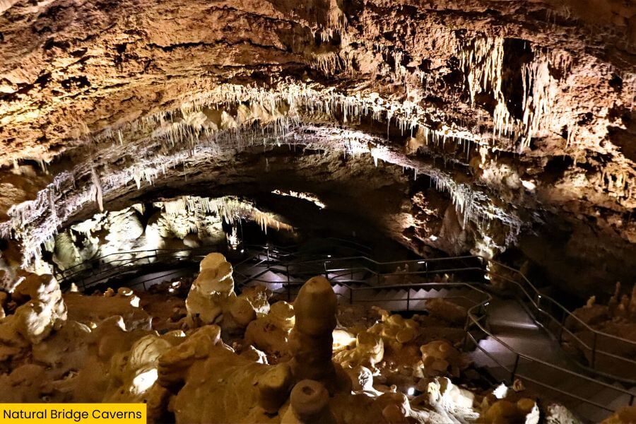 It’s famous for its massive underground chambers, crazy-cool rock formations like soda straws, flowstones, and a 60-foot limestone bridge right at the entrance.