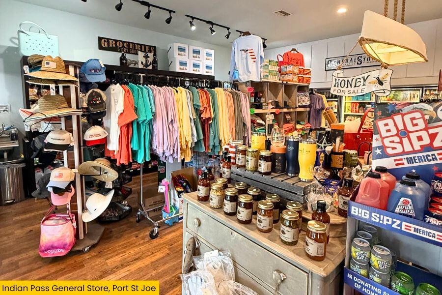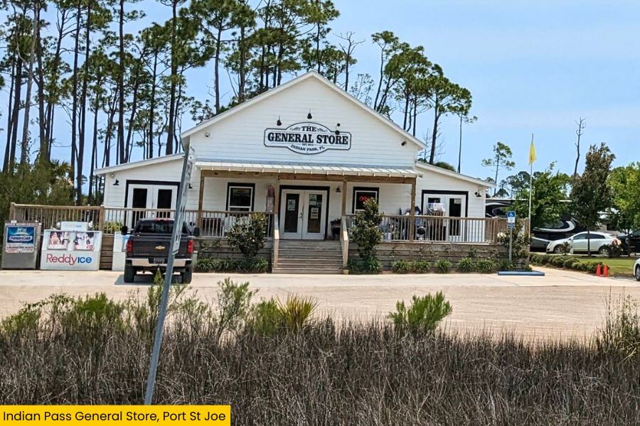 Indian Pass General Store sits right off County Road 30A in Port St. Joe, just a short drive from the beach.
