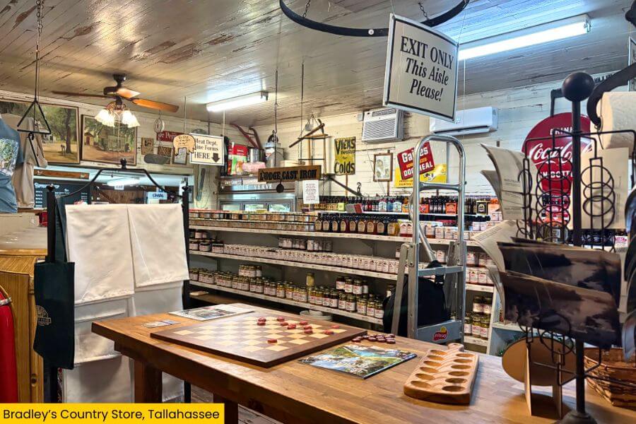 About 30 minutes up the road in Tallahassee, Bradley’s Country Store feels like stepping into a time machine from 1927.