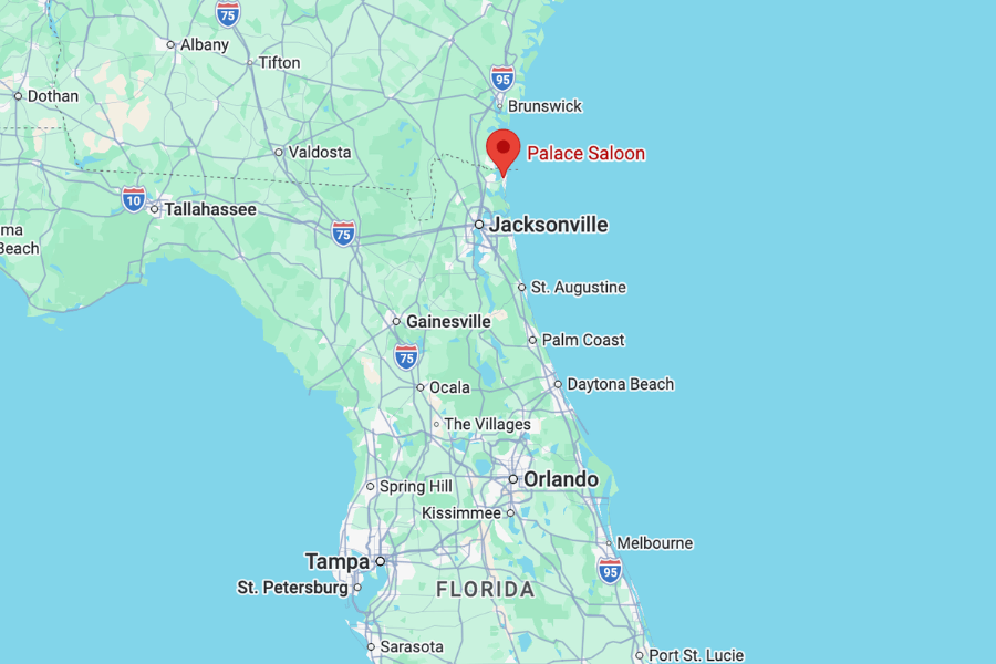 You’ll find The Palace Saloon at 117 Centre Street in Fernandina Beach on Amelia Island, in the northeast corner of Florida.