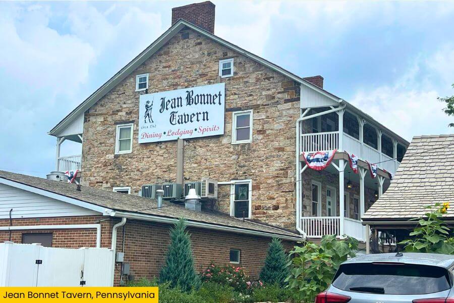 Jean Bonnet Tavern is at 6048 Lincoln Hwy, Bedford, just off the Pennsylvania Turnpike at the intersection of Route 30 and Route 31.