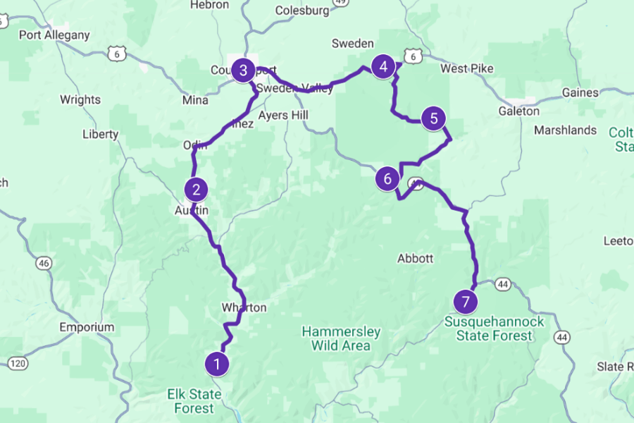 Next stop: Coudersport, the cozy little hub of Potter County that’s perfect for stretching your legs and grabbing a bite.