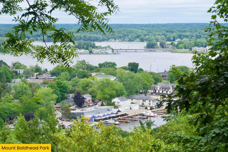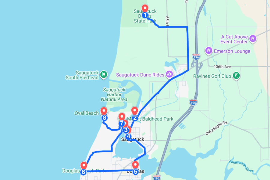 Now head back to Saugatuck and make your way to Mount Baldhead Park, where a climb up 303 wooden steps leads to one of the best lakeshore views.