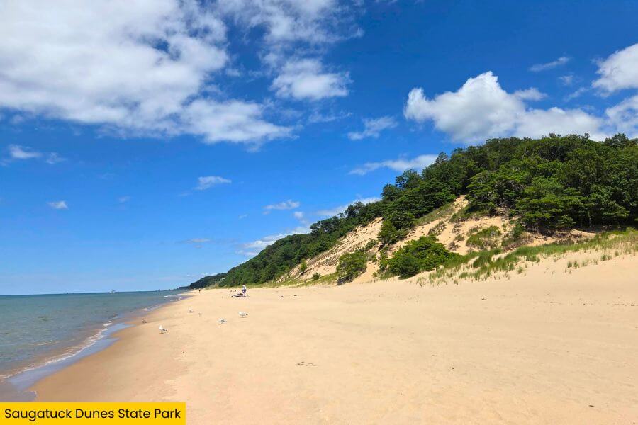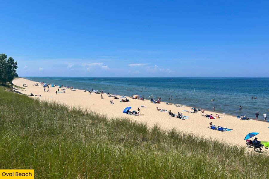 This beach is known for soft, golden sand and clear Lake Michigan water, and itโs usually quieter than the more famous Oval Beach, so you have more room to spread out.