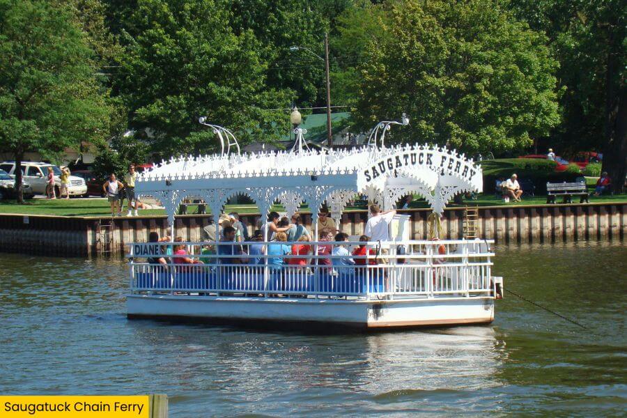 Next, hop on the Saugatuck Chain Ferry, a hand-cranked ride that crosses the Kalamazoo River between downtown Saugatuck and Mount Baldhead Park.