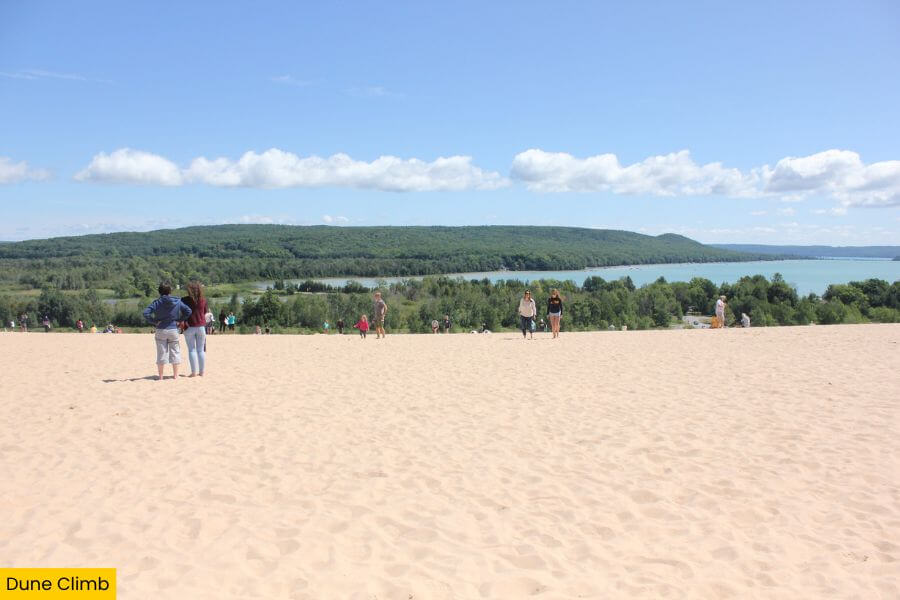 You’ll go from climbing steep sandy hills to standing hundreds of feet above Lake Michigan, then cooling off in water so clear you can see straight to the bottom.