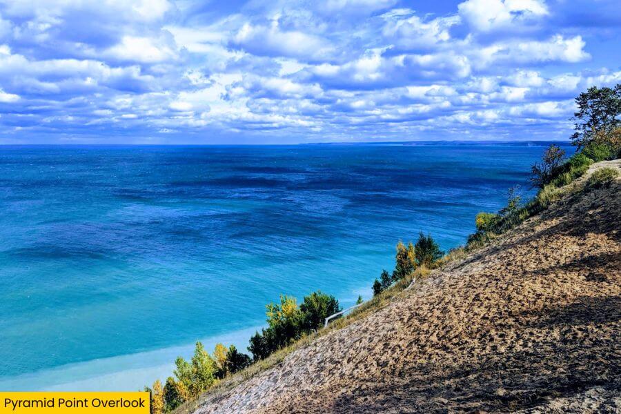 Just a 15-minute drive from the beach brings you to Pyramid Point Overlook, where a short 0.6-mile spur leads to one of the most jaw-dropping views in the area.