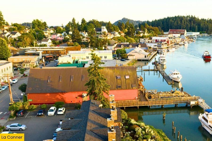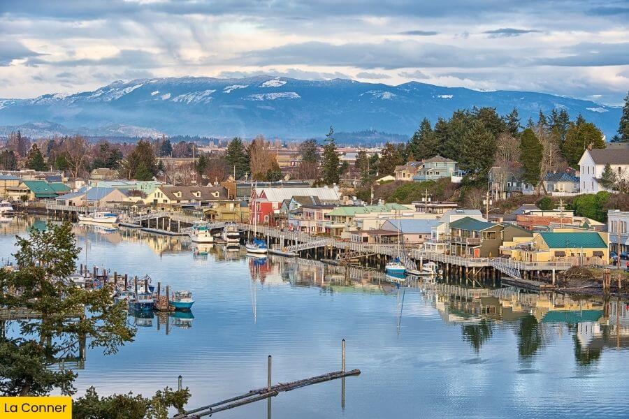 La Conner is a tiny waterfront town just over an hour from Seattle, set along the Swinomish Channel with fishing boats and colorful boardwalk views at every turn.