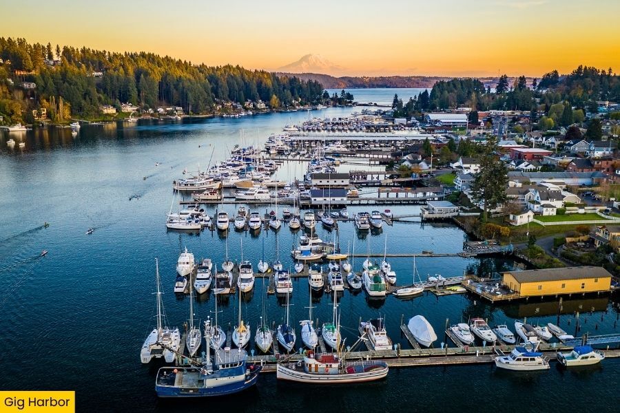 The Gig Harbor Waterfront Alliance area is the main draw, with a stretch along Harborview Drive lined with spots like the Harbor History Museum and Skansie Brothers Park, home to a restored historic net shed.