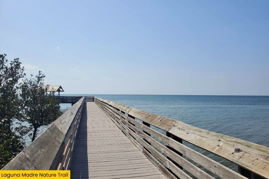 Right next door, the Laguna Madre Nature Trail is where you swap sand for boardwalk and trade beach crowds for bird calls.