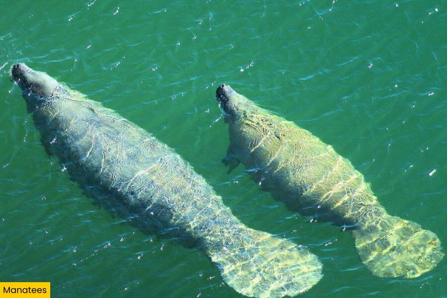 Always give manatees and dolphins plenty of space and never try to touch or feed them.