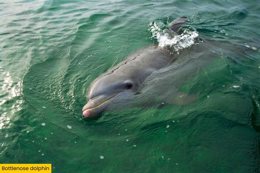 Bottlenose dolphins regularly swim through the channel, and you can spot them rolling, splashing, and sometimes hunting fish near the shoreline.