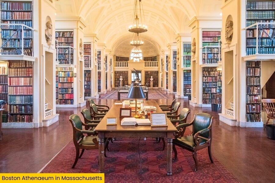 The Boston Athenaeum is right in the heart of downtown Boston, located on Beacon Street.
