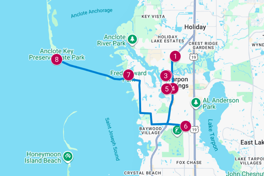 When you’re ready for some ocean views, Fred Howard Park is the perfect beachy escape just 15 minutes from downtown Tarpon Springs.