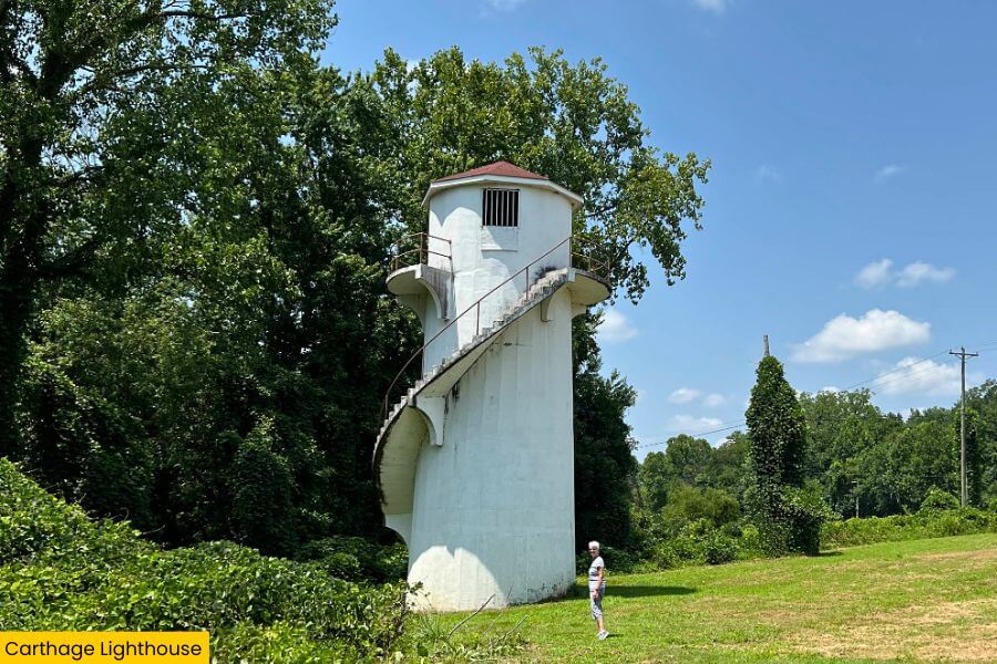 If you’re up for a bit of a detour, the Carthage Lighthouse is a fun surprise tucked away in the riverside town of Carthage, right where the Caney Fork River meets the Cumberland.
