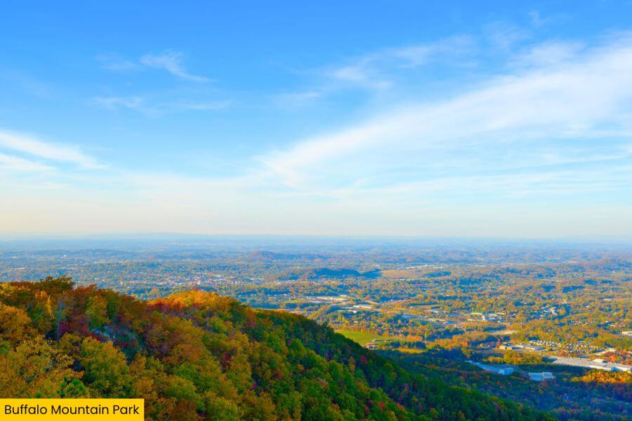 In Johnson City, you can hike Buffalo Mountain Park’s White Rock Loop and take in the scenic overlooks.