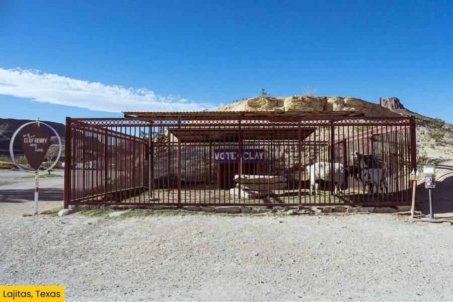 Clay Henry IV lives right beside the Lajitas General Store in a custom pen marked by a big olโ sign that proudly declares his title.