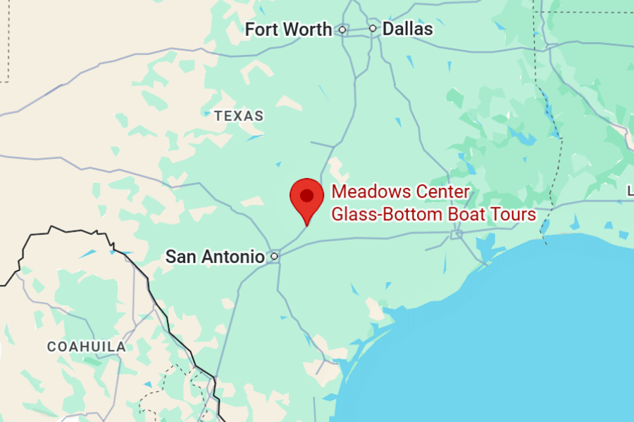 The Meadows Center Glass-Bottom Boat Tours are located in San Marcos, Texas, right on the spring-fed waters of Spring Lake.