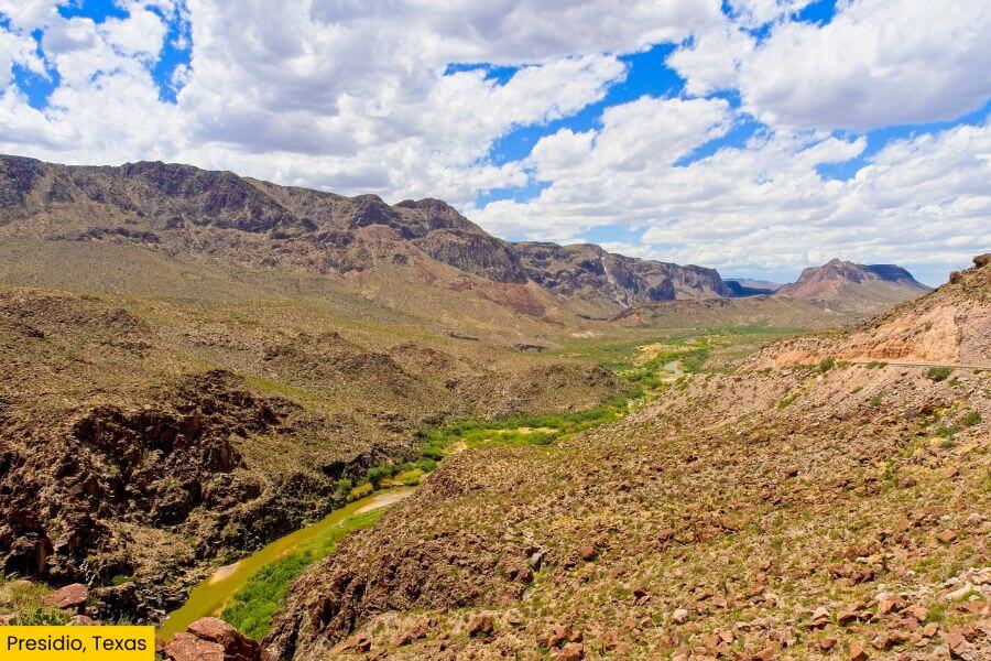 Presidio sits along the U.S.–Mexico border, where the Rio Grande curves like a lazy snake, right where Highway 67 drops you into the desert.