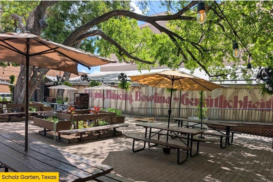 You’ll find Scholz Garten at 1607 San Jacinto Blvd, Austin, TX 78701.