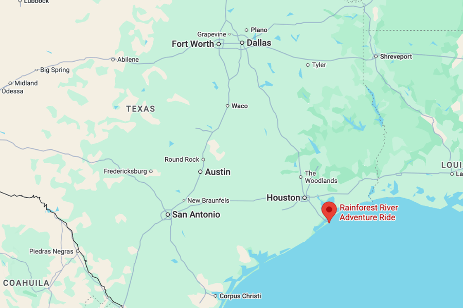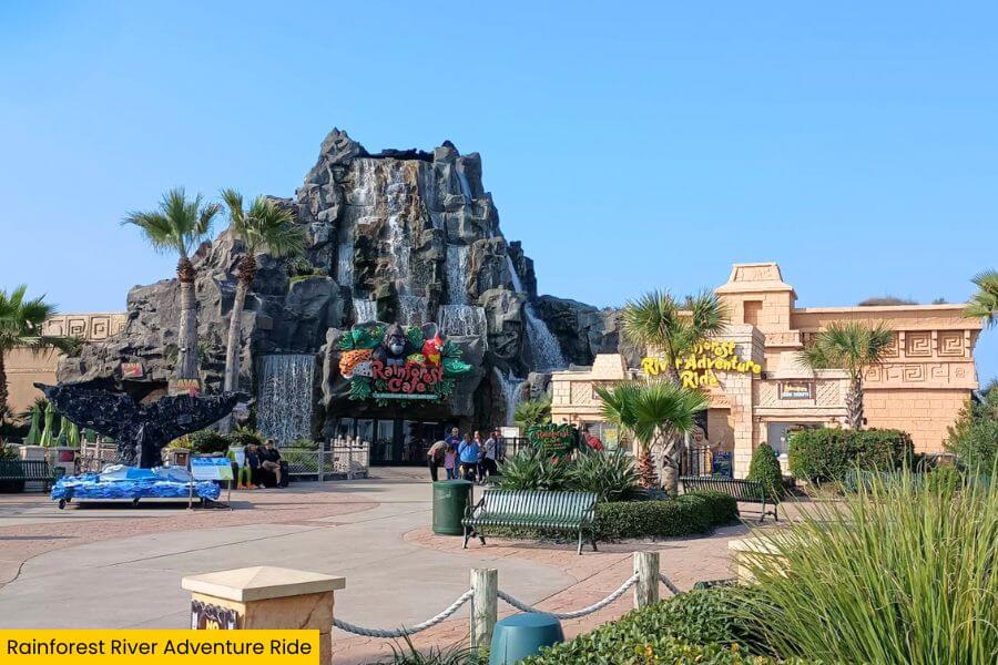 You’ll find the Rainforest River Adventure Ride inside the Rainforest Café on 5310 Seawall Boulevard in Galveston.