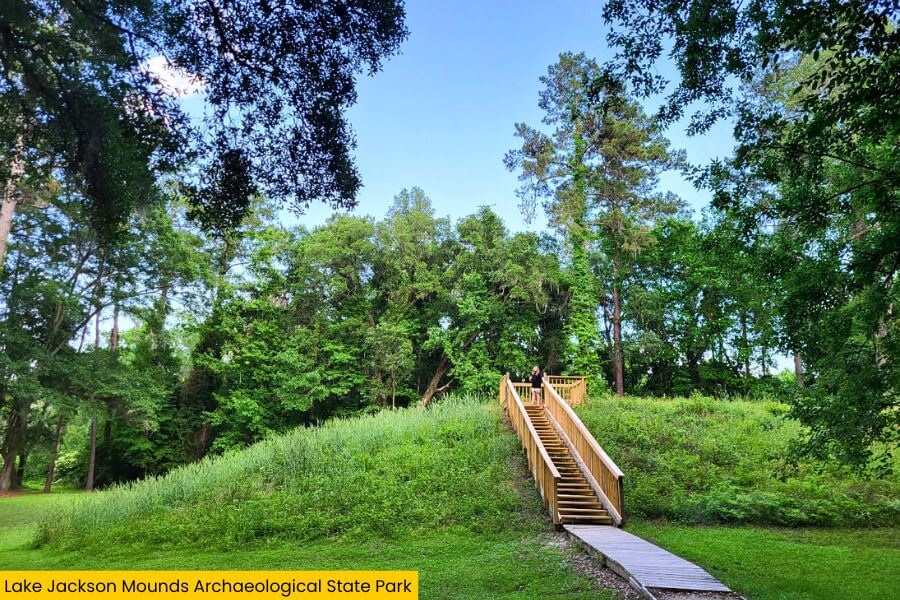 Lake Jackson Mounds Archaeological State Park is home to six earthen temple mounds built by the Fort Walton culture around 500 to 1,000 years ago, and two of them are open for you to explore up close.