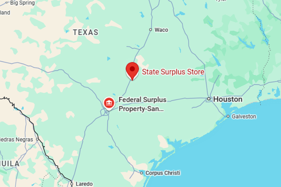 The Texas State Surplus Store is located in Austin, just a few miles east of downtown at 6506 Bolm Road.