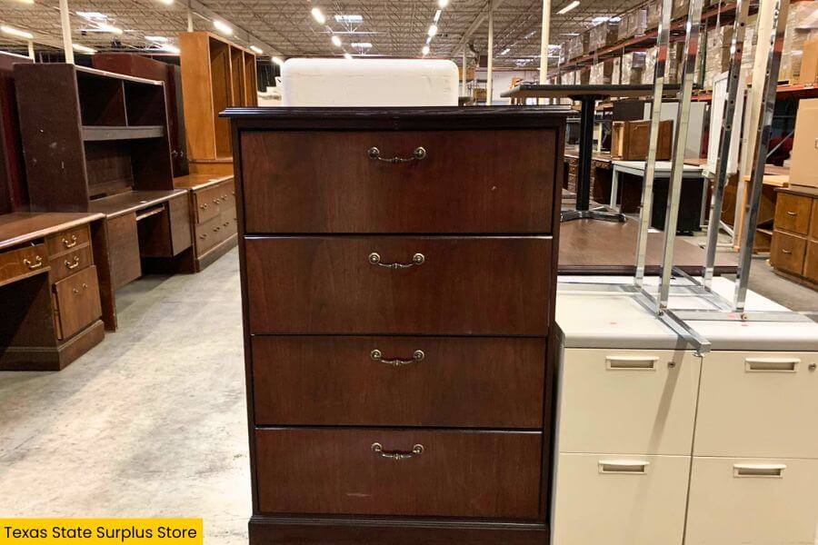 You’ll see desks, office chairs, file cabinets, shelving units, and computer monitors—all pulled from state agencies or universities when they upgrade or clear out.