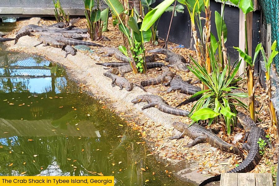 Right by the entrance to The Crab Shack, there’s a lagoon filled with baby alligators just hanging out like it’s no big deal.