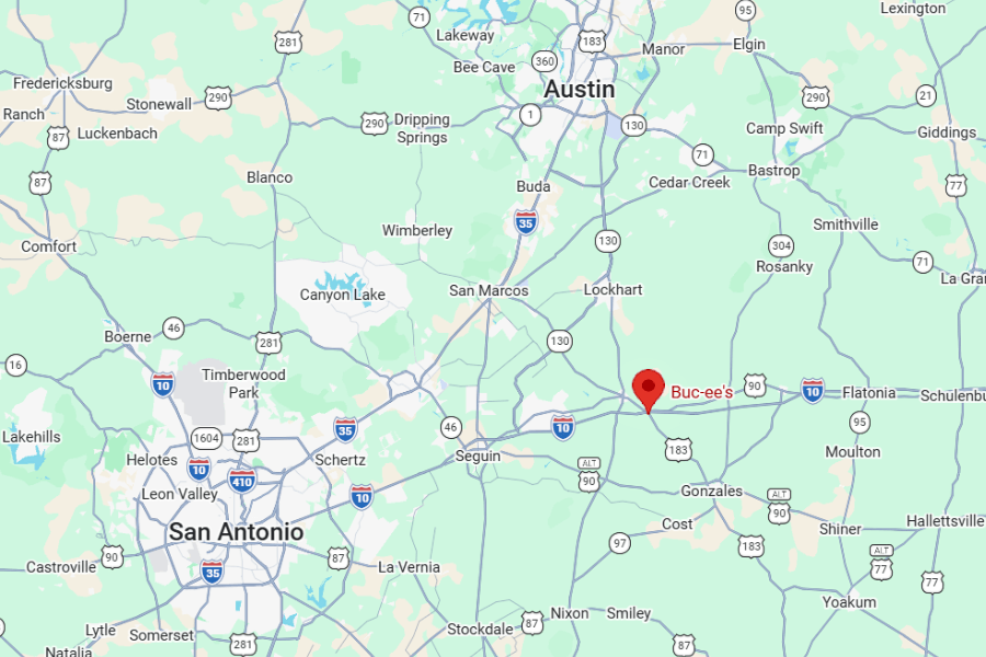 The world’s largest Buc-ee’s is located in Luling, Texas, right off Interstate 10 at 10070 I-10.