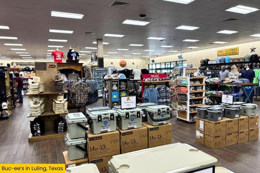 You’ll find racks of Buc-ee’s T-shirts, hoodies, pajamas, hats, mugs, and home decor, all featuring the smiling beaver mascot that has become a cult favorite across the state.