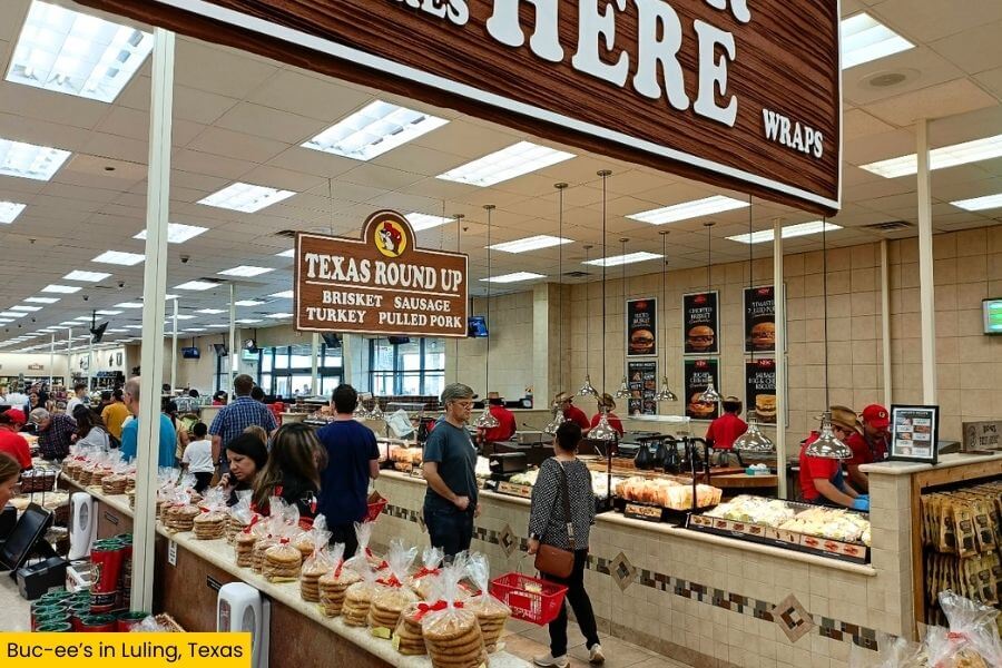 One of the biggest highlights is the fresh food counter, where you can watch staff slicing brisket for Buc-ee’s famous Texas barbecue sandwiches.